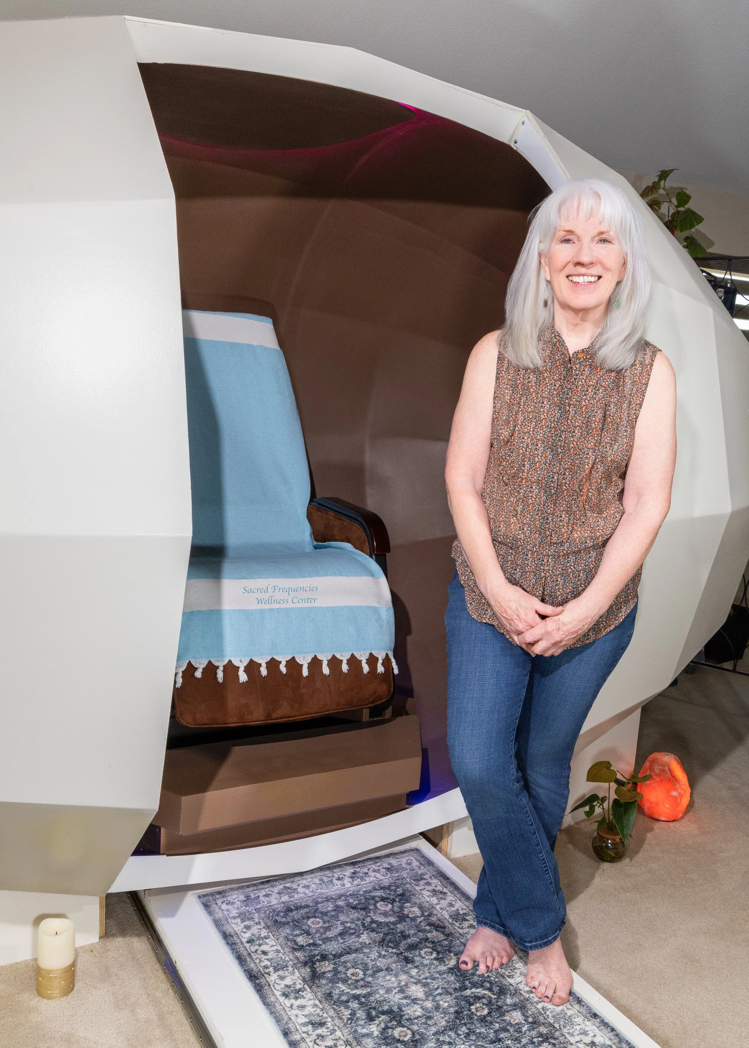 The Sound & Light Chamber features innovative technology that offers deep nervous system support through various frequencies of light, vibration, and sound in a specially shaped environment designed to amplify the frequencies being generated.